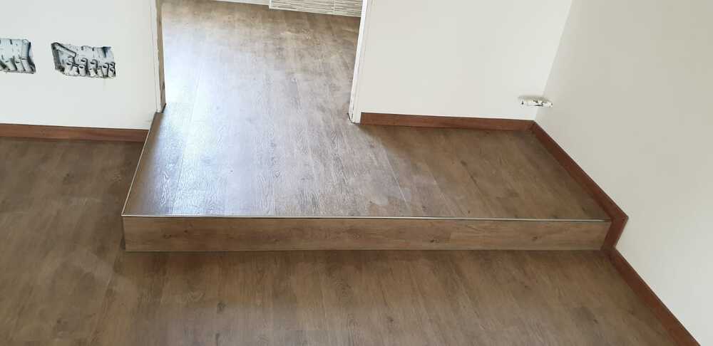 Intervento di fornitura e posa in opera di pavimenti e rivestimenti. Pavimenti in LVT della ditta Tarkett, modello Starfloor Click Ultimate con materassino incorporato per uno spessore di 6,5 mm. Rivestimenti in Gres Porcellanato di varie fatture e modelli posati dopo il pavimento in modo da avere una finitura ottimale tra pavimento e rivestimento. Abbiamo completato il lavoro con fornitura e posa di battiscopa abbinato al pavimento