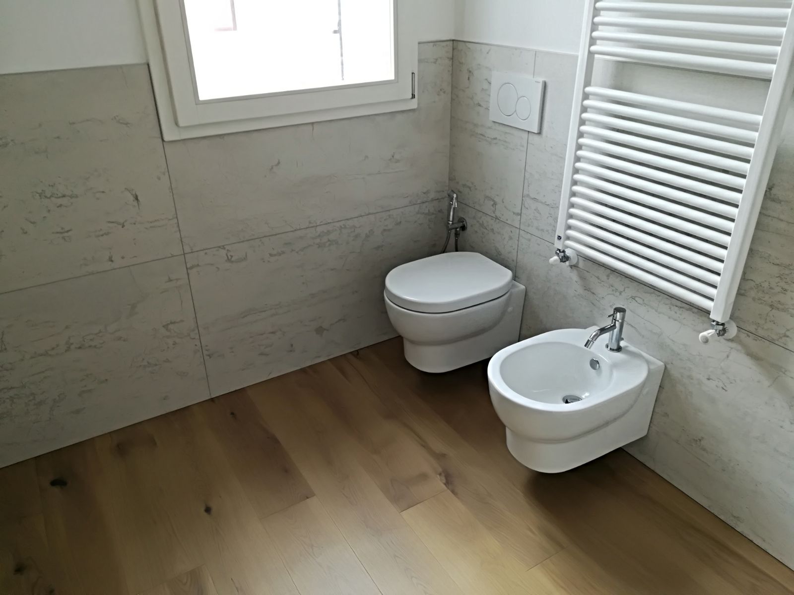 Nona centrale a Ferrara, intervento di restauro su un alloggio molto grande e di prestigio. Abbiamo selezionato e scelto tutti i materiali con la proprietà direttamente nel nostro negozio. I 2 bagni sono risultati molto belli perché molto variegati nei colori delle ceramiche. Il pavimento nel resto della casa è di legno prefinito in Cabreuva Incenso verniciato liscio. Questo materiale è molto pregiato e resistente, prima di confermare il preventivo è meglio verificare la disponibilità in quanto molto limitata
